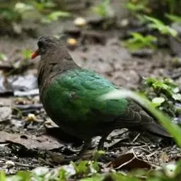 斑尾鹃鸠体长38厘米,是体大而尾长的褐色鹃鸠。背及尾满布黑色或褐色横斑。头灰,颈背呈亮蓝绿色。胸偏粉,…