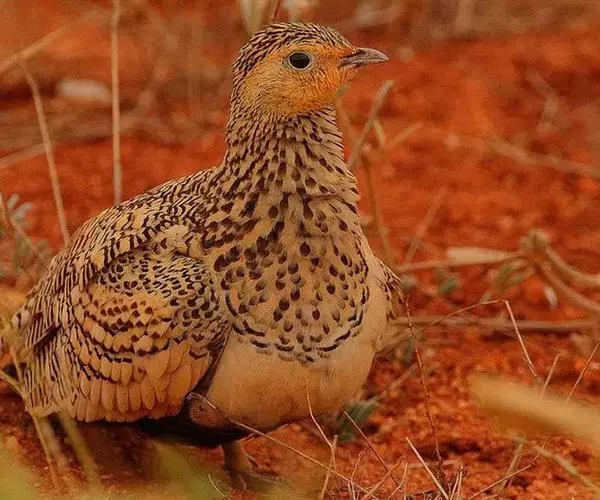 黑腹沙鸡属鸟纲、鸽形目、沙鸡科。拉丁学名为Pterocles orientalis。在中国主要分布于西北部新疆维吾尔自治区的北部和西部地区。 黑腹沙鸡