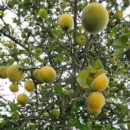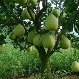 沙田柚,芸香科柑橘属乔木。树干较高,枝叶繁茂,嫩枝扁且有棱,叶质颇厚且为浓绿色,…