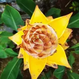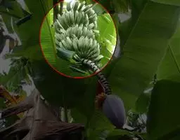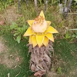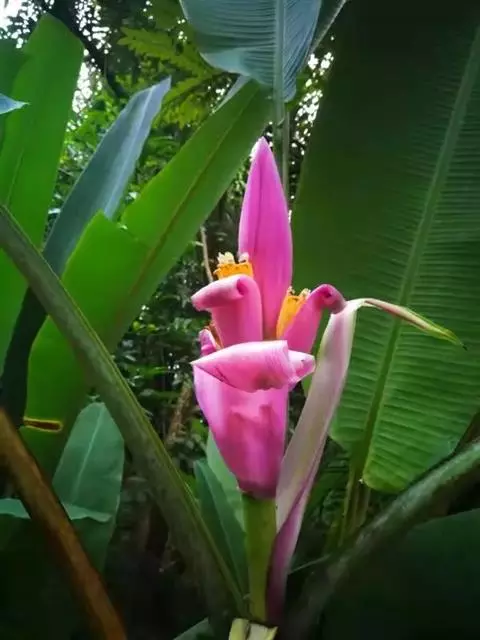 紫苞芭蕉形如一枝亭亭玉立、含苞待放的荷花,但却开在高高的芭蕉树上,这就是紫苞芭蕉。
