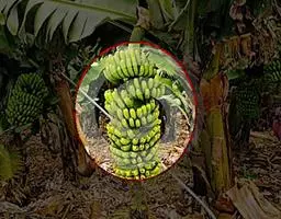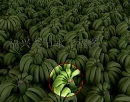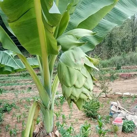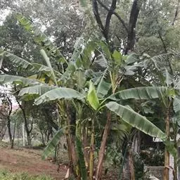 香蕉’),芭蕉科芭蕉属多年生草本植物,植株丛生,有匐匍茎;假茎浓绿有黑色斑点;叶片长圆形,…