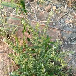 全草长8-25cm,密被粗硬毛和短柔毛。根细圆柱形,长短不一,直径0.5-2mm,表面紫黑色或黑棕色,断面皮部黑紫色,木部淡黄白色。茎细圆柱形,直径0.5-2.5mm,表面灰绿色或暗褐色,断面类白色,中空。叶互生,多破碎卷曲,草质,灰绿色,完整者展平后呈倒披针状条形或披针状条形。花棕黄色。小坚果三角状卵形,常4个着生在一起。气微,味微苦。
