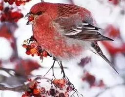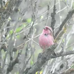 藏朱雀:全长约17-18厘米。雄鸟头部深红色具光辉,喉部暗红色具白色点斑;背部灰白色,各羽具玫瑰红…