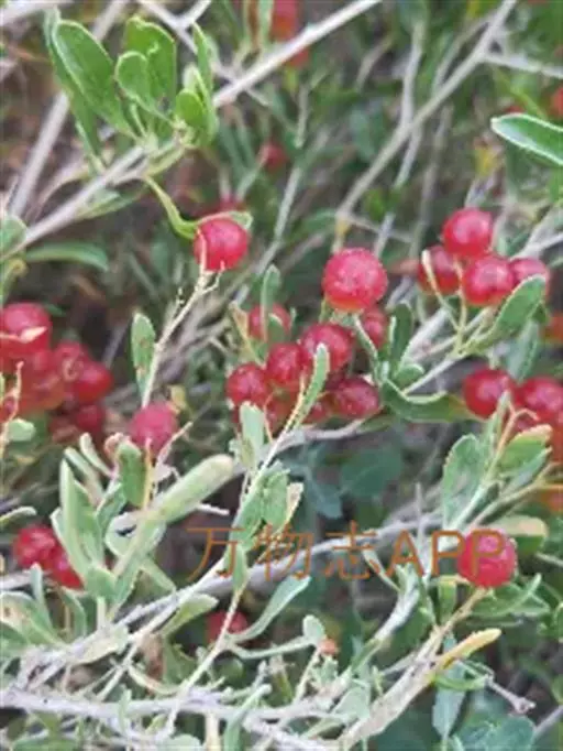 灌木,高1-2米。多分枝,弯、平卧或开展;不孕枝先端刺针状;嫩枝白色。叶在嫩枝上2-3(4)片簇生,宽倒披针形,长18-30毫米,宽6-8毫米,先端圆钝,基部渐窄成楔形,全缘,稀先端齿裂。花排列较密集。核果卵形,有时椭圆形,熟时深红色,果汁玫瑰色,长8-12毫米,直径6-9毫米。果核狭卵形,长5-6毫米,先端短渐尖。花期5-6月,果期7-8月。