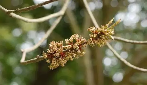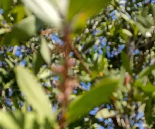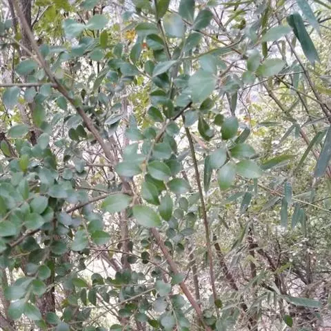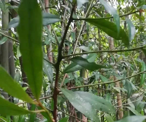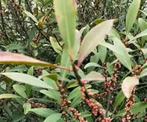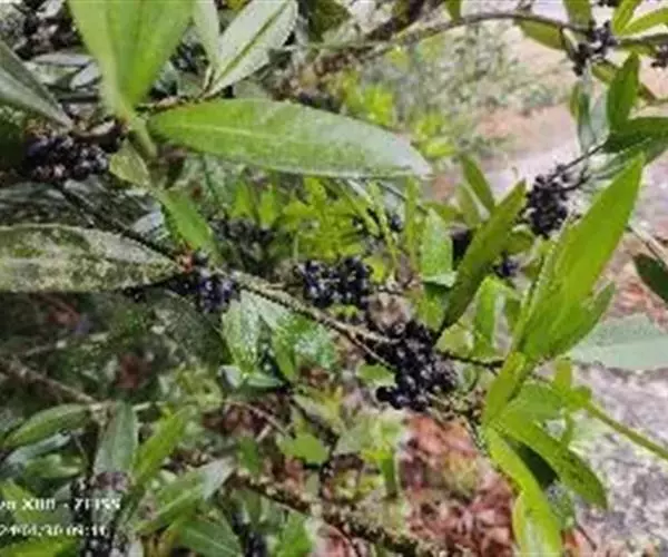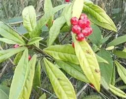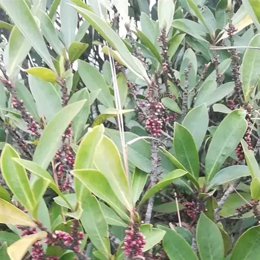 大灌木,高2-7m。叶互生;叶柄长约1cm;叶片革质,长圆状倒披针形至倒披针形,长7-17cm,宽1.3-6cm,先端急尖或钝,稀突然渐尖,基部楔形,多少下延,全缘,背面中脉隆起,侧脉不明显。伞形花序或花簇生,着生于具覆瓦状排列的苞片的小短枝上,小短枝腋生或生于无叶老枝叶痕上,有花3-10朵,苞片广卵形,具疏缘毛;花梗长2-3mm;花长(2)3-4mm;萼片卵形,稀圆形,长约1mm,具缘毛,有时具腺点;花瓣白色或淡绿色,有时为紫红色,基部连合达全长的1/4,花时反卷,卵形或椭圆形,具腺点,里面和边缘密被乳头状突起;雄蕊在雌花中退化,在雄花中着生于花冠中部,花丝极短,花药卵形,先端常具乳头状突起;雌蕊与花瓣等长或超过花瓣,花柱极短,柱头伸长,先端扁平。果球形或近卵形,直径4-5mm,灰绿色或紫黑色,有时具纵行腺条纹或纵肋,冠以宿存花柱基部,果梗有时长达7mm。花期4-5月,果期10-12月。