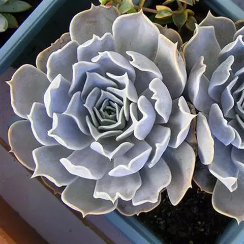 紫珍珠是景天科石莲花属的多年生肉质草本植物。植株中小型;叶片肉质,匙形,呈莲座状紧密排列;叶片粉紫色,…