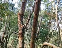 常有多个主干,树高12~28米、宽12~18米,无顶芽.幼树卵形,长大后呈圆形或不规则树冠.幼树树干光滑,肉色至锈红色,长大后树皮逐渐横向剥落,呈奶黄色至褐色,硬块状.