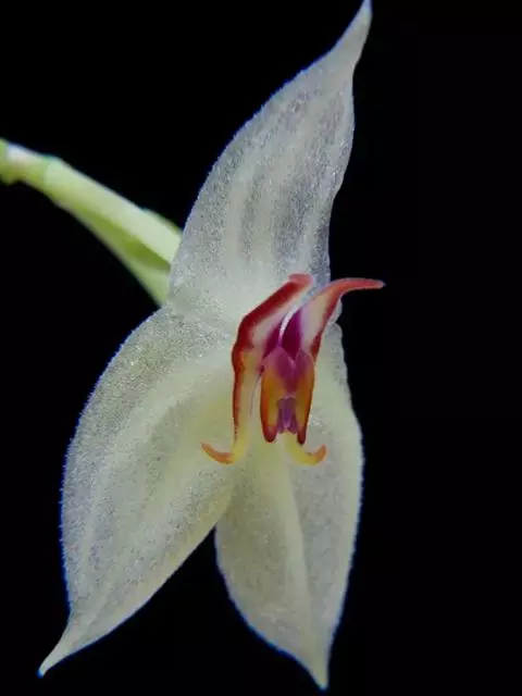 齿瓣石豆兰:根状茎纤细,匍匐生根。假鳞茎在根状茎上聚生,近圆柱形或瓶状,顶生1枚叶,基部被鞘或鞘腐…