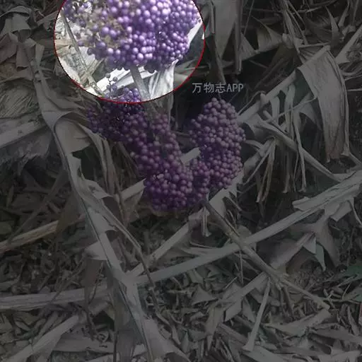 果实近球形,紫色,径约2毫米。花期5-7月,果期8-11月。