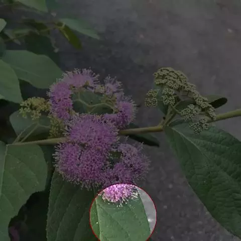 聚伞花序宽3-4厘米,通常4-5次分歧,花序梗长1.5-2.5厘米;苞片细小;花萼杯状,被灰黄色星状毛,萼齿钝三角形;花冠紫色或淡紫色,无毛,长约2.5毫米,裂片钝圆,长约1毫米;雄蕊长约5毫米,花药椭圆形,药室纵裂;子房无毛。
