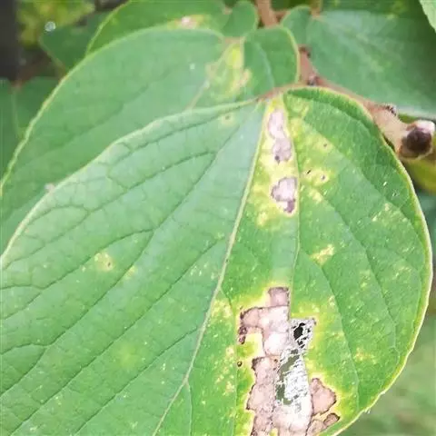 灌木,高1-3米;小枝、叶柄和花序均密被灰黄色星状毛和分枝毛。叶片卵状椭圆形或椭圆形,长6-15厘米,宽3-8厘米,顶端通常渐尖,基部钝或浑圆,边缘有细锯齿,表面被短硬毛,稍粗糙,背面被灰黄色星状毛和细小黄色腺点,侧脉8-12对,主脉、侧脉和网脉在背面隆起;叶柄粗壮,长1-2.5厘米。