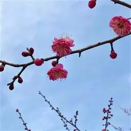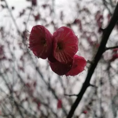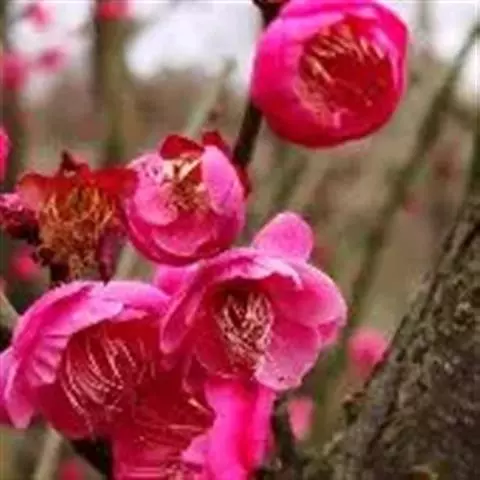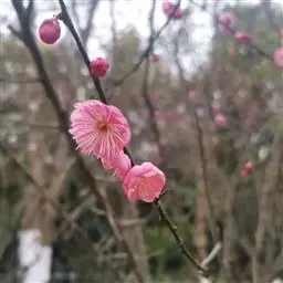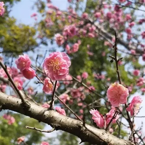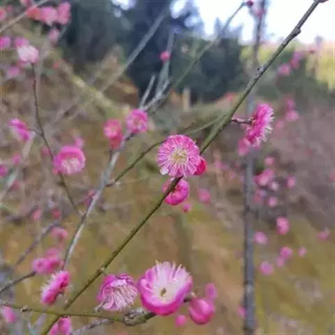 杏梅系的梅花观赏价值高,花径大、花色亮且花期长。