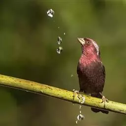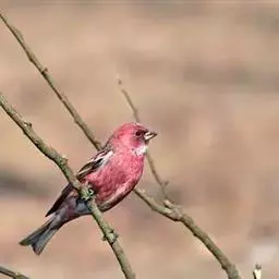 酒红朱雀小型鸟类,体长13~15厘米。雄鸟通体深红色,头部深朱红或棕红色,下背和腰玫瑰红色,…