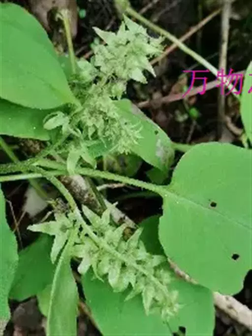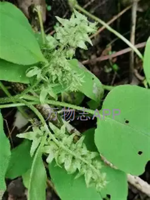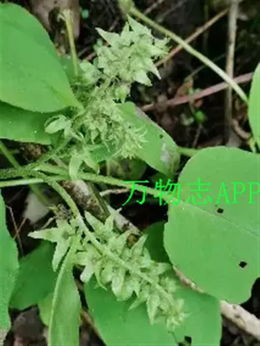 多年生草本;根状茎多条,细长,长达15厘米。茎数条,细弱,长10-35厘米,平卧或斜升。基生叶数个,叶片长卵形,先端渐尖,基部心形,两面都密生短糙毛,叶柄长达12厘米,茎生叶较小。花序含多数花,无苞片,密生短伏毛;花萼长约6毫米,5裂至基部,裂片线状披针形,背面有密短伏毛,腹面稍有毛;花冠漏斗状,白色或稍带淡红色,长约1厘米、无毛,筒部比萼长,檐部比筒部短2倍,裂片卵形,喉部附属物高约1毫米;雄蕊5,着生花冠筒上部,稍外伸,花丝长约3毫米,花药长圆形,长约0.9毫米,钝;子房4裂,花柱长约6毫米,柱头很小,头状。小坚果4,长3-5毫米,碗状突起的边缘内折。花果期4-5月。