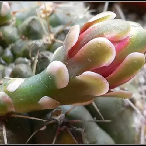 绯花玉(学名:Gymnocalycium baldianum (Speg.) Speg.)是仙人掌科裸萼球属多肉植物,植株呈扁球形,表皮墨绿色,刺针状,每个刺座有5枚灰色周刺,花生于球体顶端,夏季开花,花色有白、粉红、深红等。果实纺锤形,深灰绿色,种子黑色。