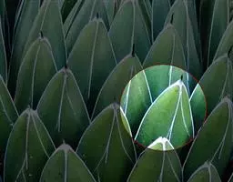 与在沙漠里把叶子缩小成针状的其他植物不同,千岁 兰的茎又粗又短,根又直又深。茎顸下凹,像个大“木盆”,“木 盆”两边却各有一片又长又宽的带状叶片。叶片宽约30厘 米,长可达3米。由于沙石的磨损和干燥的气候,叶片常 裂成许多细片,远远望去,整个千岁兰就像一只趴在海滩 上的大章鱼。
