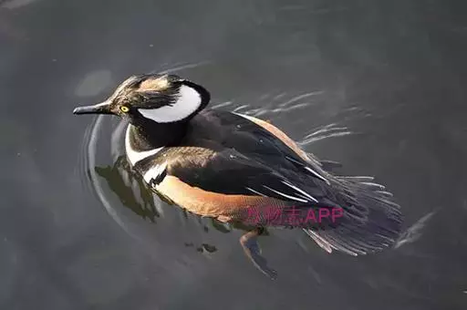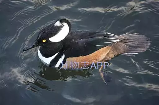 棕胁秋沙鸭体长42-50厘米,翼展56-70厘米。是北美最小的水鸭。雌雄相异形。雄鸭长得相当英俊,有红棕色的庞克(Punk)头,头羽隆成脊状时有大片的白色斑羽和界限分明的黑边,休息时就会变成眼睛背后一种简单的白色宽条纹斑;头部与白帽鹊鸭相似,但身上斑纹较多,总体石板色,有黑色,白色和棕色的羽毛组合。头部,颈部和翕为黑色;臀灰色;尾巴深褐灰色;喉咙,胸部,腹部白色。胸部两侧是黄褐色或红褐并有不规则的黑边纹。