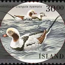 长尾鸭体长约58厘米,是中等体型的灰、黑及白色鸭,中央尾羽特长,雄鸟胸部的黑色斑块为特征。…