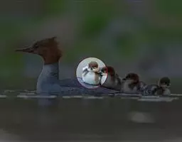 孵化出的雏鸟长满绒毛,留在巢里24小时后就可以走动并养活自己。雌鸭用软喉发声引并导它的小鸭子到具有丰富的无脊椎动物和鱼类的水域去觅食。幼鸭可以潜水,初步尝试的深度很浅。经过70天,幼鸭就具备了飞行能力。