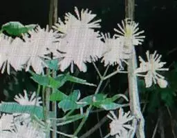 复单歧聚伞花序长达10厘米,有(1-)3-8花;下部和中部的苞片似茎生叶,但较小,最上部的苞片三全裂,无柄;花梗长达7厘米;萼片白色,倒卵状椭圆形,长6-11毫米,宽3-6毫米,顶端钝;花瓣金黄色,长3毫米,瓣片近圆形,长约0.7毫米,顶端通常微凹,有时全缘;雄蕊20-45枚,长约7毫米,花药宽椭圆形,长约0.8毫米;心皮约与雄蕊等长,子房倒披针形,花柱长约2毫米。
