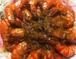 炒大虾是一道菜品,制作原料有大对虾、葱段、姜片等,用微火焖烤透,再将勺移正火,收汁微浓时放入味精,…