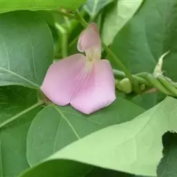 缠绕草本。有球状或卵状块根;茎细长,被白色稀疏短硬毛。奇数羽状复叶;小叶3~7,卵形或菱状卵形,长3~7.5厘米,宽1.5~4厘米,先端急尖,有短尖头,基部宽楔形或圆形,上面被极稀疏的短柔毛,下面近于无毛,脉上有疏毛;小叶柄有时有毛。总状花序腋生,长6~26厘米;苞片和小苞片线形,被短毛;花带黄绿色或淡绿色,长约11毫米,花萼稍呈二唇形;旗瓣圆形,较短,长约10毫米,冀瓣长圆形,长约7毫米,龙骨瓣最长,卷成半圆形;子房有疏短毛,花柱卷曲。荚果长约8厘米,宽约6毫米。花期6~8月,果期9~10月。