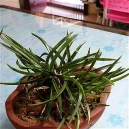 风兰 H.H.Hu):植株高8-10厘米。茎长1-4厘米,稍扁,被叶鞘所包。叶厚革质,狭长圆状镰刀形。…