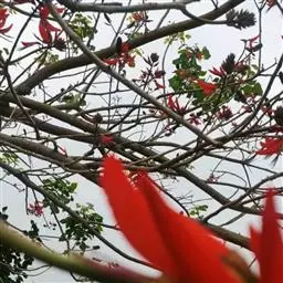 刺桐,是豆科刺桐属乔木植物。树皮灰褐色;分枝有圆锥形黑色皮刺;叶柄无毛,无刺;花密集,…