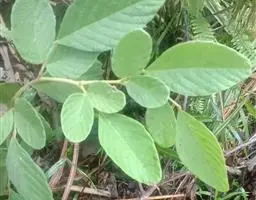 叶长10-20cm,有小叶2-4对;小叶对生,革质,椭圆状长圆形,很少卵形,长5-10cm,宽2.5-5cm,顶端钝急尖或短渐尖,基部钝圆稍不等边,侧脉纤细,多条,不明显,网脉不明显;小叶柄长约5mm。