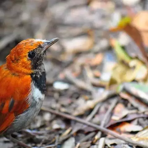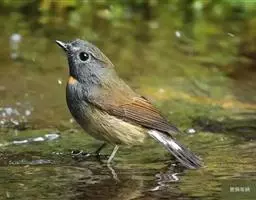 赭红尾鸲:小型鸟类,体长13-16厘米。雄鸟前额、头侧、颈侧、颏至胸概黑色,头顶和背灰色或黑色,…