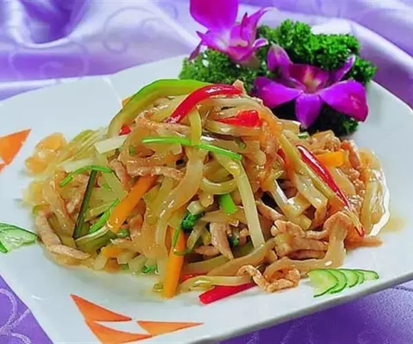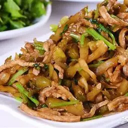 榨菜肉丝是四川省传统的名菜,属于川菜。此菜在四川家庭和中低档饭馆常年制作,原料易得,操作简便,咸淡适口,脆嫩鲜美。