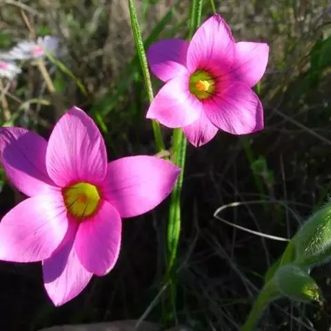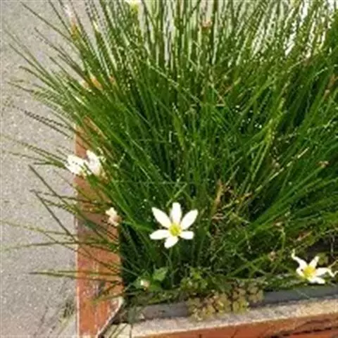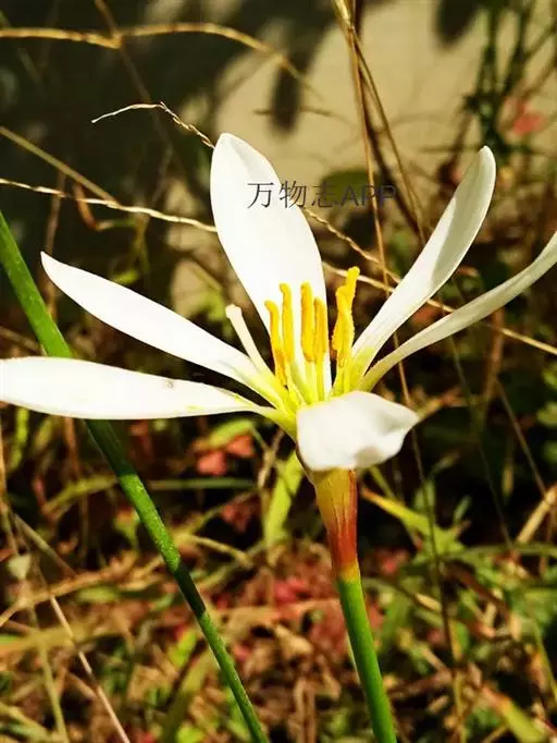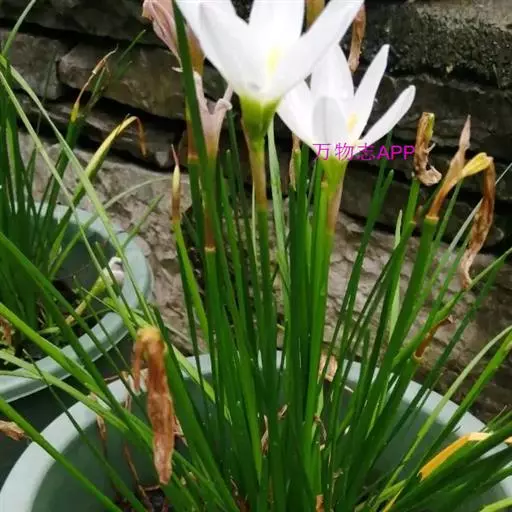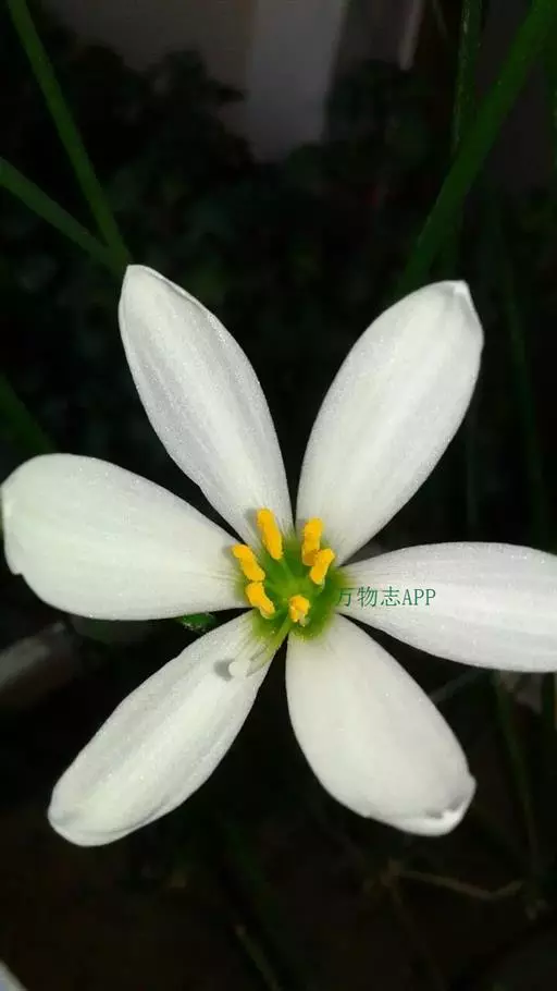 葱莲 多年生草本。鳞茎卵形,直径约2.5厘米,具有明显的颈部,颈长2.5-5厘米。叶狭线形,肥厚,亮绿色,长20-30厘米,宽 2-4毫米。