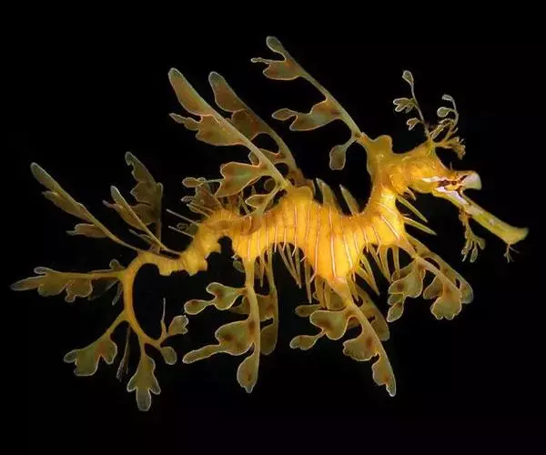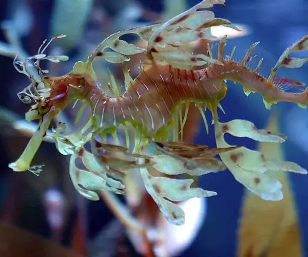 叶海龙(学名:Phycodurus eques)是海龙科,叶海龙属鱼类。体长平均30厘米,身体由骨质板组成。吻管状,内部无牙,细长。胸鳍位于颈部,背鳍则沿脊椎延伸至整条背部。身体有用于抵御掠食者的硬刺。其体表生有许多海藻叶瓣状的扁平半透明附肢。