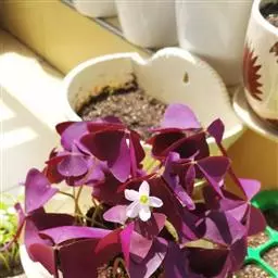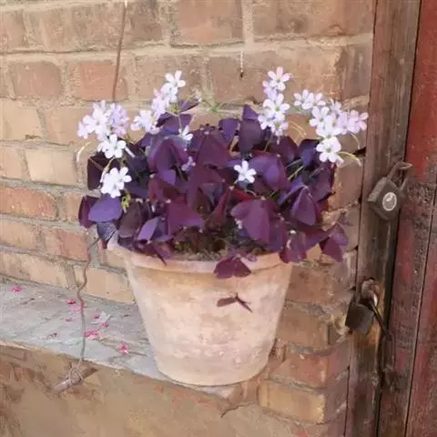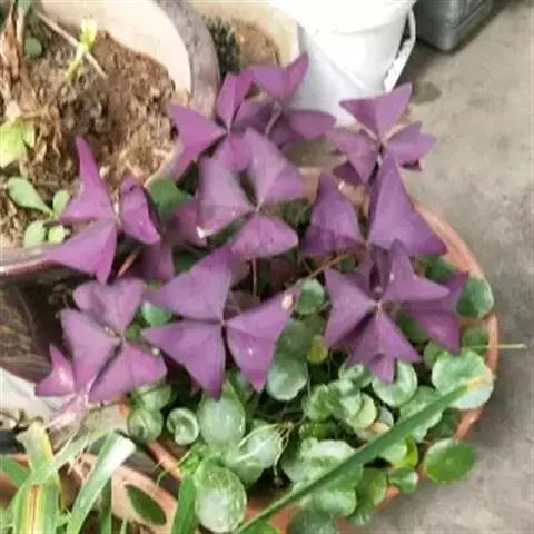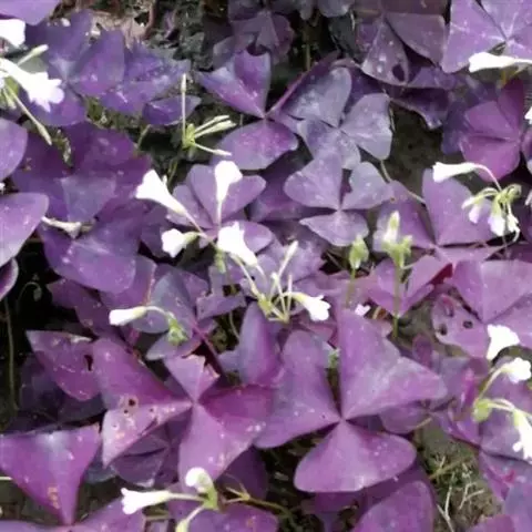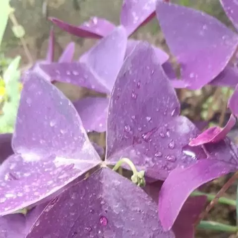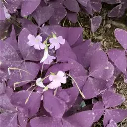 多年生草本,地下块茎粗大。叶丛生,具长柄,掌状复叶,小叶 3枚,无柄,倒三角形,深紫色。紫叶酢浆草…