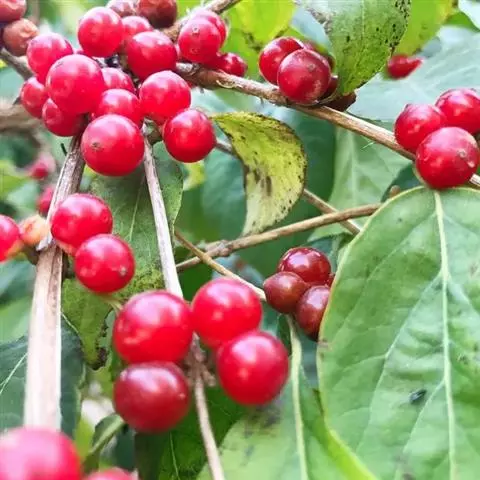 椭圆形蓝紫色浆果像玛瑙石,味道酸甜可口。浆果含7种氨基酸和维生素C,可生食,又可提供色素,亦可酿酒、做饮料和果酱。花蕾、果、花又是蜜源。除具极高的食用价值外,果实中还含有丰富的vP活性物质,诸如芸香甙、花青甙等,具有极高的药用价值。果实不仅有清热解毒之功效,而且对降压,提高血球数,治疗小儿厌食症都有一定疗效。嫩枝可入药,清热解毒。蓝靛果全植株含有桃叶珊瑚甙,种子含花色甙。