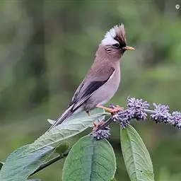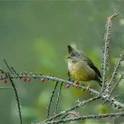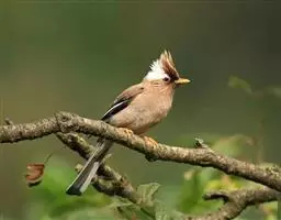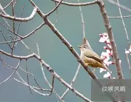 纹喉凤鹛:小型鸟类,体长13-16厘米。头顶和羽冠暗褐色或褐灰色,上体橄榄褐色,飞羽黑褐色,…