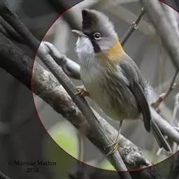 白领凤鹛是画眉科的一类动物。体长15-18厘米。头顶和羽冠土褐色,具白色眼圈,眼先黑色,枕白色,…