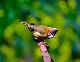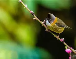栗耳凤鹛,雌雄羽色相似。额、头顶至枕灰色,头顶有一短的不甚明显的羽冠,…