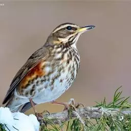 白眉歌鸫,是雀形目鸫科鸫属鸟类。体型略小并具有褐色斑点的歌鸫,上体橄榄褐色,眉纹白色,脸部斑驳,…
