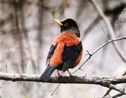 灰头鸫:中型鸟类,体长23-27厘米。整个头、颈和上胸褐灰色,两翅和尾黑色,上、下体羽栗棕色。…