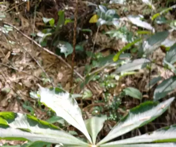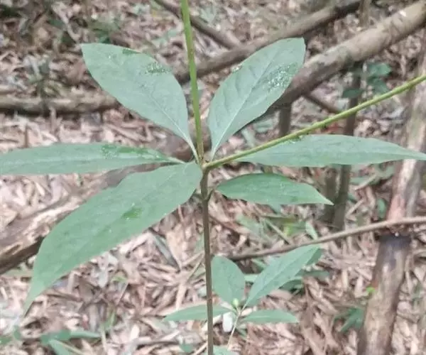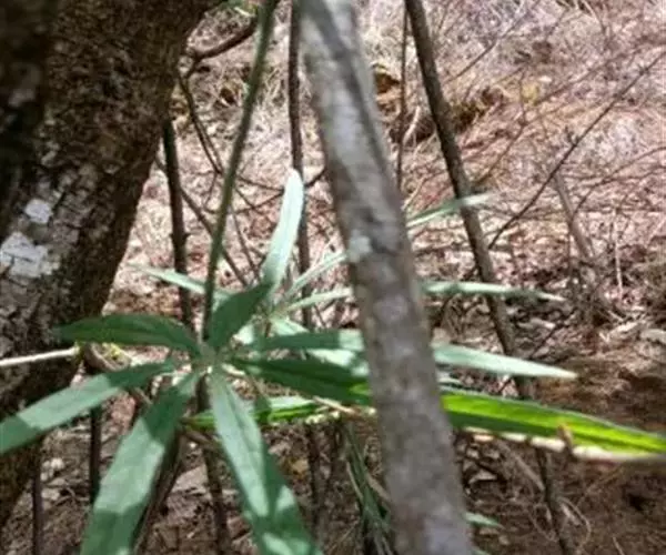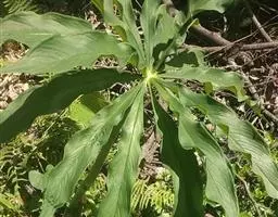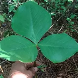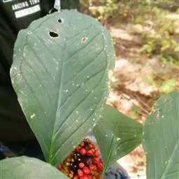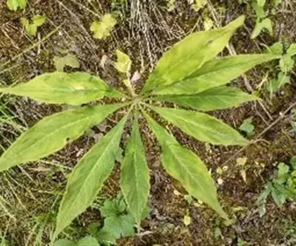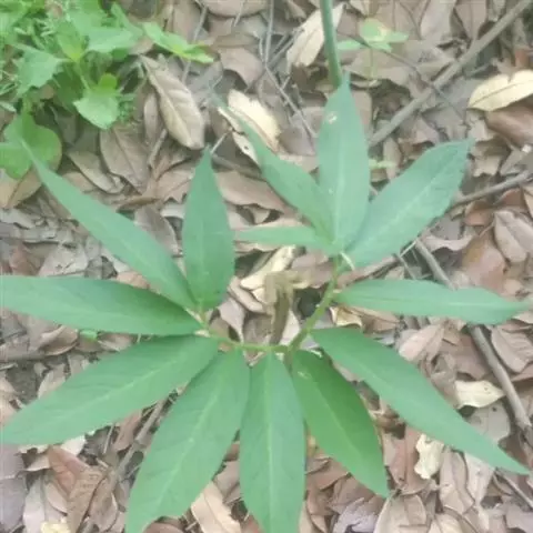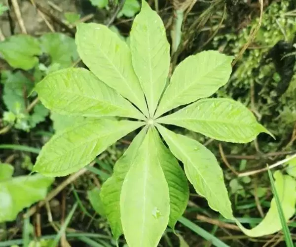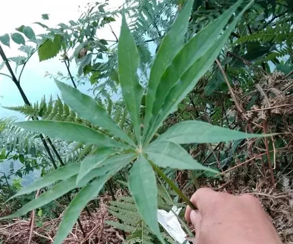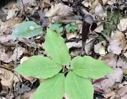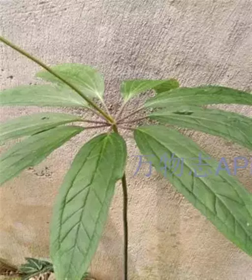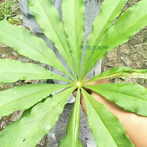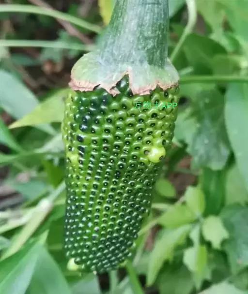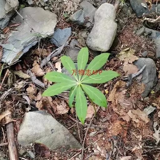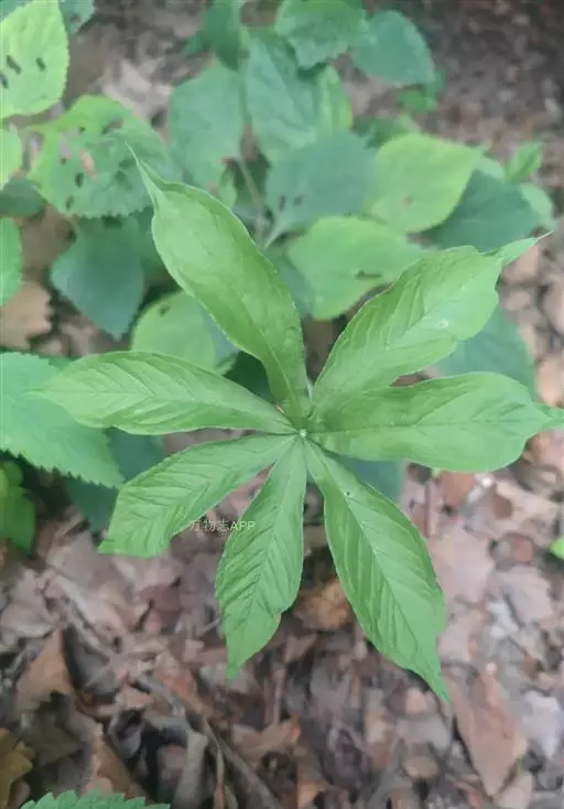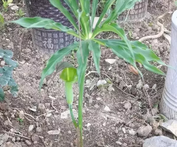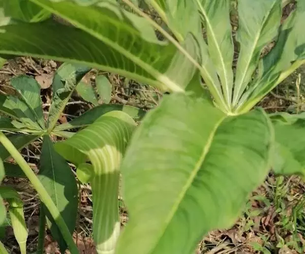 为天南星科天南星属的植物,有毒。多年生草本。块茎略呈球形,直径可达6厘米。叶1枚,小叶7~23枚,呈辐射状排列,形如一把伞,顶端细丝状,叶柄长,长40~80厘米。5~7月开花,雌雄异株,花序的佛焰苞为绿色或淡紫色,有白色条纹,肉穗花序的附属器棒状,顶端钝。浆果多数,成熟时为鲜红色。