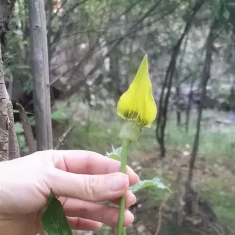 黄苞南星 Schott)是天南星科、天南星属植物,块茎近球形,鳞叶锐尖,叶片鸟足状分裂,…