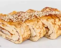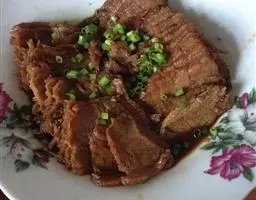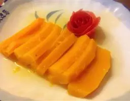 5.食用时先将整羊卧放于特制的木盘内,羊角系上红绸布,抬至餐室请宾客欣赏后,由厨师将羊皮剥下切成条装盘,再将羊肉割下切成厚片,羊骨剁成大块分别装盘,配以葱段、蒜泥、面酱、荷叶饼,并随带蒙古刀上桌。