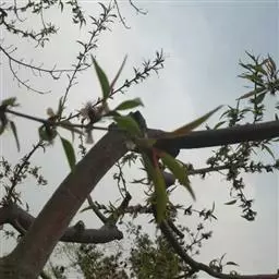在5至6月时发生,叶出现紫褐色小点,后渐扩大成圆形,病斑部位干燥收缩后成为小孔、病菌多在病枝病叶上过冬,发育最适温度为25℃至28℃,借风传播,在多雨季节有利于侵染发病,树势衰弱,排水不良,通风透光差时,病害发生严重。