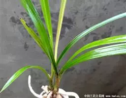 莲瓣兰名品花是定型的品种,每株的兰叶都在6~7片,叶的造型大多数定型为环曲型垂叶,仅有少数保持野生状态下的直立型和弓型。我国历来将环曲型作为最美的造型,不管艺兰家或者爱兰的一般人士都喜欢具有曲线美的叶型。