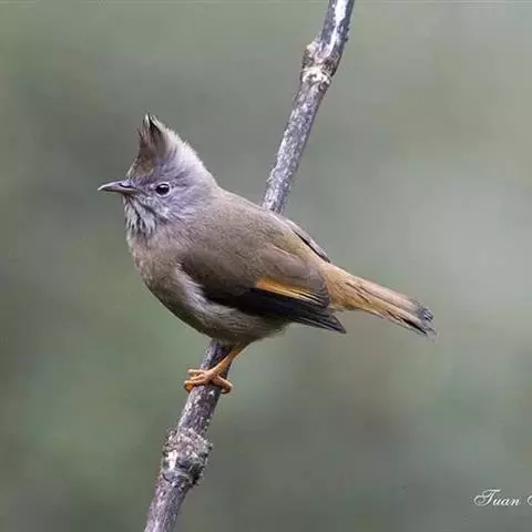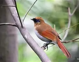 栗耳凤鹛,雌雄羽色相似。额、头顶至枕灰色,头顶有一短的不甚明显的羽冠,…