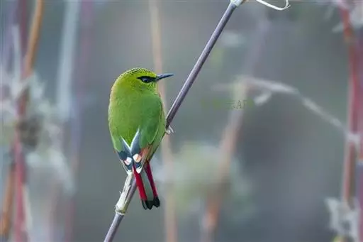 行为 火尾绿鹛(图4) 活动于茂密灌丛,竹林和矮树丛等向阳的地方。单独或结小群活动。与莺类或太阳鸟混群。从杜鹃丛中吸食花蜜。平常无声。联络时发出tsi-tsit高叫。trrrr-trrr-trrr之前有高声尖叫。示警时重复tzip声。 [3-4]