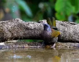 纹喉凤鹛:小型鸟类,体长13-16厘米。头顶和羽冠暗褐色或褐灰色,上体橄榄褐色,飞羽黑褐色,…