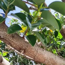三角榕为常绿乔木或小乔木。叶片近三角形,薄肉质,全缘,长4~6厘米,宽3~5厘米,浓绿色。