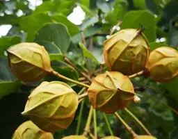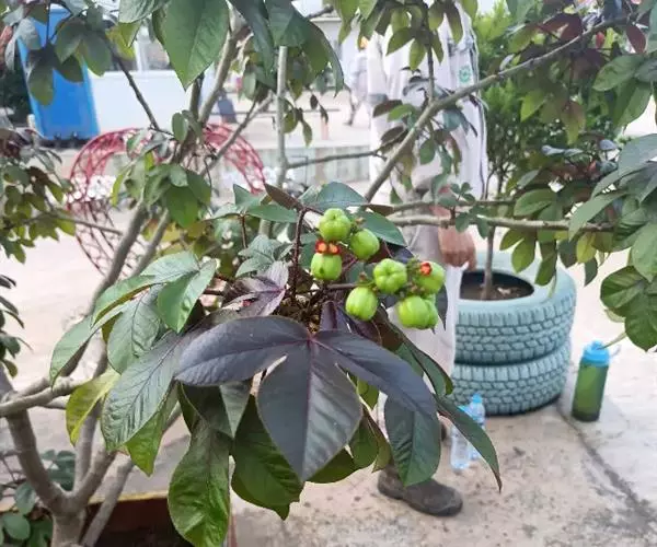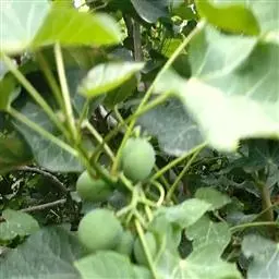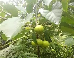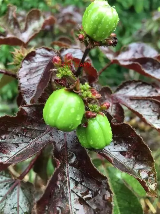 蒴果近球形,径约2.5cm,嫩果绿色,成熟时裂成3个2瓣裂的分果爿,成熟种子为黑色。